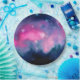 Plaques en papier avec un beau design abstrait en rose et bleu. Des étoiles blanches parsemèrent cette image du cosmos. Trippy et cool. Un cercle blanc avec une bordure noire superposée avec votre texte à l'intérieur.