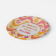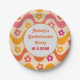 Ceci est une assiette en papier personnalisée pour une soirée de bachelorette rétro avec des fleurs rétro très mignonnes sur des vagues abstraites groovy en rose, orange, jaune et violet. Vous pouvez la modifier et la rendre unique en utilisant le modèle personnalisable.