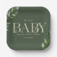 Assiettes En Carton Eucalyptus Letter Baby shower vert neutre