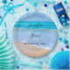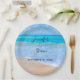 Plaques en papier avec la photo d'une scène océanique bleu clair avec des vagues douces le long d'un bord de mer et du sable brun doux. Un ciel bleu avec des nuages moelleux au loin. Paysage tropical idyllique serein. personnalisez avec vos détails mariages.