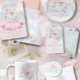 Ce design présente une magnifique illustration d'un charmant cheval de poney de conte de fées, une composition d'aquarelle élégante d'étoiles magiques et de ballons pincés pastel. Utilisez le champ modèle pour ajouter votre nom.