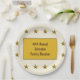 Créez une plaque papier unique pour votre prochaine réunion de famille. Ces assiettes de fête sont ornées d'un cadre d'étoiles dorées. Vos informations d'événement apparaissent dans un rectangle doré au centre. Tout le texte peut être customisé rapidement et facilement.