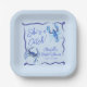 Capricieux Assiettes en papier pour Baby Shower Bleu côtier - Une idée de décoration de baby shower sur le thème nautique et côtier avec des illustrations aquarelles de homard bleu et de crabe bleu sur un cadre fantaisiste dessiné à la main. Avec une police manuscrite et un texte en blocs stylisés dans des tons de bleu océan. Parfait pour un thème Maine, Nantucket ou Cape Cod, un brunch de mariage sur le thème de la pêche ou du lac, un déjeuner de mariage sur le thème des fruits de mer ou des douches de mariage sur le thème de la plage et de l'océan. Élevez vos décorations de baby shower avec des assiettes en papier personnalisées pour un mariage qui crient que c'est l'été !