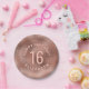 Numériquement élégant a créé un faux rose arrière - plan de texture de feuille d'or avec des zones de texte personnalisables dessus. On y lit "Joyeux anniversaire" avec des zones de texte personnalisables pour un nom et un âge. AVIS : LA CONCEPTION EST UNE IMAGE NUMÉRIQUE ET ELLE SERA IMPRIMÉE SUR LE PRODUIT.