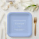 Assiettes en papier bleu et blanc pour votre fête de fin d'études. Personnalisez avec le texte de votre choix, changez la couleur de fond pour votre préférée.
