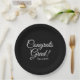 Félicitations grad noir et blanc coutume texte de script classique et de classe année de graduation des plaques de papier fête. Design sobre et élégant. Texte blanc entièrement personnalisable sur couleur arrière - plan noir. Toutes les couleurs sont modifiables. Ce sont des serviettes de fête de remise des diplômes. Consultez le reste de la collection pour obtenir des cadeaux de remise de diplômes, des faveurs, des fournitures de fête et des articles de décoration supplémentaires.