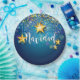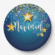 Plaque 9" - Feliz Navidad sur arrière - plan bleu avec étoiles d'or - - Voir cette conception sur plaques, serviettes, dessous de verre et plus dans mon magasin.