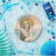 Le design estival séduisant qui présente une femme glamour en lunettes de soleil et chapeau à larges bords fleuri posant le long de la plage dans son maillot de bain fleuri. La palette de couleurs comprend une teinte aqua sarcelle fraîche avec des accents orange et jaune et une touche fantaisiste. Un fond abstrait peint dans des couleurs assorties atténuées montre le soleil, la mer et le sable. Vous pouvez ajouter du texte pour personnaliser cette assiette ou commander l'assiette avec uniquement les graphiques imprimés dessus. Ce design féminin convient bien pour les anniversaires, les enterrements de vie de jeune fille, les soirées entre filles et les rassemblements estivaux pour célébrer presque tout ! Les assiettes sont disponibles en 2 tailles : présentées ici dans la taille plus petite de 7 pouces de diamètre, elles sont également disponibles dans une taille plus grande de 9