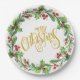 Assiettes En Carton Festive Holly Wreath - Gold Foil Joyeux Noël