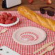 Assiettes En Carton Feston Shell - rose de corail et blanc