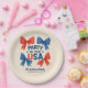 Ce design est décoré sur le thème 4 juillet "Party in the USA" avec des arcs rouges et bleus sur arrière - plan pastel bleu et rose pastel. Ce produit peut être facilement personnalisé. Si vous avez besoin d'aide pour la personnalisation du produit ou si vous avez besoin de produits correspondants, veuillez me contacter via Zazzle.