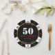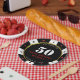 Assiette en papier pour fête d'anniversaire 50 ans avec jeton de poker de casino noir, blanc, rouge et or. Personnalisez-la avec les détails de votre événement.
