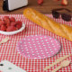 Assiettes En Carton Fête d'anniversaire à pois rose et blanc