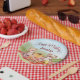 Pique-nique nounours fête d'anniversaire plaques personnalisées en papier, Deux nounours sur une couverture de pique-nique, agréable pour les anniversaires extérieurs d'été.