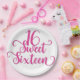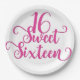 Assiettes En Carton Fête d'anniversaire des 16 ans blanc et rose vif