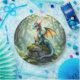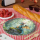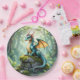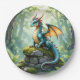 Un dragon bleu et vert mignon sur le thème de la fête d'anniversaire assiettes de papier pour les garçons. Un dragon mignon sur un vieux thème mossy pierre sci fi anniversaire thème.