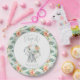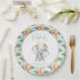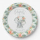 Aquarelle éléphant petite arachide plaque de papier fête d'anniversaire. Avec des illustrations délicates et aquarelles d'éléphants et de superbes détails floraux. Partie d'une collection.