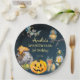 Halloween éffrayant spooktaculaire fête d'anniversaire vaisselle personnalisée assiettes modèle, Halloween citrouille, chauve-souris, hibou, chat, brasserie étoile ciel noir arrière - plan.