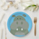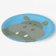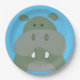 Anniversaire fête amusant plaque en papier hippo pour la décoration de table d'anniversaire. Un joli design de décoration pour la fête des enfants. L'hippo serait idéal pour une soirée à thème au zoo ou si l'enfant aime l'hippo. L'arrière - plan est bleu et l'hippo dans les tons verts.