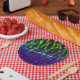 Assiettes de fête d'anniversaire néon étincelant de lueur arc-en-ciel. Personnalisez avec n'importe quel texte. Les articles assortis sont disponibles.