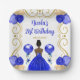 Assiettes En Carton Fête d'anniversaire Peau noire Princesse en bleu