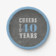 Ajoutez une touche personnalisée cool à votre fête d'anniversaire avec ces assiettes de fête à thème "cheers" en tableau noir et bleu. Le design présente "encourage à xx ans" dans le centre. Exemple illustré pour une fête de 40e anniversaire; personnaliser avec n'importe quel âge.