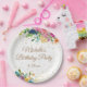 Elégant rose, bleu et jaune aquarelle floral sur des plaques de papier blanc fête d'anniversaire. Contactez-nous pour obtenir de l'aide sur la personnalisation ou pour demander des produits correspondants.