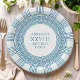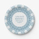 Assiettes de fête élégantes pour une soirée à thème Toge grecque ou romaine avec un motif méandre grec minimaliste en bleu. Produit personnalisable pour une célébration mémorable. Parfait pour vos mariages, fiançailles, soirées de remise de diplôme, anniversaires de mariage, faire-part, enterrements de vie de jeune fille et anniversaires sur le thème de la Grèce antique ou de la Rome antique.