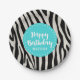 Assiettes En Carton Fête d'anniversaire Turquoise et Black Zebra