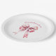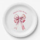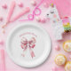 Assiettes de fête de bébé fille à arc rose adorables et sucrées. Personnalisez-les avec votre texte.