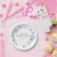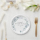 Cette assiette en papier pour la fête de mariage présente des fleurs élégantes bleu poussiéreux et blanc et une police minimaliste élégante. Elle est parfaite pour tout événement simple et classique.