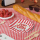 Assiettes En Carton Fête de cinéma rayée rouge et blanc Popcorn