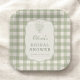 Assiettes en papier pour fête de fiançailles conçues avec un motif vichy vert sauge doux. Le style propre et classique se marie bien avec les thèmes de fiançailles inspirés du jardin et intemporels. Convient aux fêtes de fiançailles, déjeuners et célébrations prénuptiales. Texte entièrement personnalisable avec un design prêt à imprimer pour la vaisselle de fête.