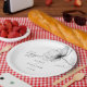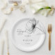 Ces assiettes en papier pour fête de fiançailles avec dessin floral en noir et blanc minimaliste et élégant 'nous sommes engagés' peuvent être personnalisées avec vos informations dans une typographie chic. Conçues par Thisisnotme©