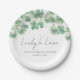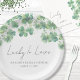 Assiette de fête pour la Saint-Patrick et la Baby Shower de la mariée "Lucky in Love". Célébrez la future mariée avec ce design festif et charmant, parfait pour une baby shower de la Saint-Patrick. L'assiette présente des trèfles ou des shamrocks aquarelles vibrants ornant le dessus dans un mélange de tons de vert frais, ajoutant une touche vive et élégante.