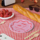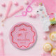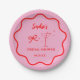 Assiettes En Carton Fête de mariage avec bordure rétro ondulée rose et