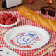 Assiettes En Carton Fête de mariage avec monogramme rouge blanc & je d