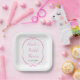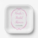 Jolies assiettes en papier pour la fête de mariage avec un cadre ruban rose. Parfait pour une fête de mariage de printemps ou d'été. Les mots peuvent être modifiés pour s'adapter à vos propres détails ou exigences.