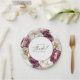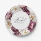 Une assiette en papier pour une fête de mariage ultra-féminine qui capture l'essence d'une élégance rustique avec son abondante exposition de pivoines dans des tons profonds et harmonieux de burgundy, prune, rose poussiéreux et blanc ivoire doux. Les éléments botaniques féminins sont combinés comme dans un bouquet de jardin somptueux et rendent l'accueil de vos invités si agréable ! Un texte manuscrit à l'aspect moderne en écriture cursive indique "Mariage" dans un style charmant. Personnalisez le modèle de texte avec le nom de la future mariée.