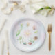 Bienvenue dans un monde fantaisiste des merveilles minuscules de la nature avec notre collection de baby shower "Un petit love bug est en route". Cette assiette en papier est enchanteresse et constitue un prélude parfait à une journée remplie de joie et de célébration. Ornée d'éléments délicats à l'aquarelle, l'invitation présente un ensemble charmant composé d'une abeille, d'un papillon, d'une coccinelle, d'un escargot, d'une chenille, d'un scarabée et d'une éphémère, chacun réalisé avec une touche douce. L'œuvre d'art est nichée parmi une profusion de fleurs et de verdure, créant une scène de beauté naturelle et de charme.