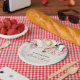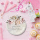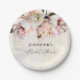 Assiettes en papier Fête de mariage Florale Rose. Conçues dans un élégant style rose poudré et blanc avec des pivoines et des roses. Articles assortis dans notre magasin Cava Party Designs.