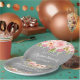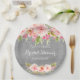 Assiettes En Carton Fête de mariage gris fleurs roses rustique