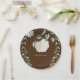 Assiettes en papier Fête de mariage avec des hortensias bruns et blancs. Typographie crème. Design et police modernes.