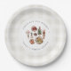 Ajoutez une touche de charme frais à votre fête de mariage avec cette assiette sur le thème du marché des agriculteurs rustique par Redwood & Vine Design Co. Avec une bordure à carreaux beige doux et des aquarelles colorées de produits, ce design est parfait pour les fêtes de cuisine, les rassemblements de jardin ou les célébrations d'inspiration fermière. Idéal pour une mariée qui est officiellement « hors du marché. »