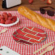 Assiettes En Carton Fête de Noël Brique Rouge et Paillettes