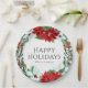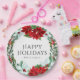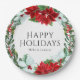 Fête Fête Fête Fête de Noël moderne Entreprise Plaques de papier de fête présente un design chic de vacances de l'aquarelle rouge et blanc poinsettia fleurs, saint et mistletoe en rouge, blanc et vert festif sur un arrière - plan blanc. Le texte "Happy Holidays" est écrit en calligraphie script typographie et personnalisé avec votre nom d'entreprise ci-dessous. Parfait pour votre fête de Noël d'entreprise. Modifiez simplement le texte dans les zones de texte fournies. Conçu par ©Evco Holidays www.zazzle.com/store/evcoholidays