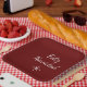 Fête de Noël Feliz Navidad plaque en papier rouge, avec un simple flocon de neige et de typographie de script. Avec le lettrage personnalisable, vous pouvez ajouter votre propre texte. Un ajout festif à votre fête de vacances ou à votre table de dîner.