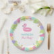 Feuilles et fleurs tropicales, avec des fruits et un char flamand mignon pour la parfaite fête de piscine pour filles !