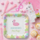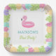 Feuilles et fleurs tropicales, avec des fruits et un char flamand mignon pour la parfaite fête de piscine pour filles !