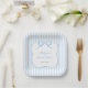 Cette conception élégante présente ma bordure originale de ruban bleu pâle à l'aquarelle avec un nœud lâche. Montré ici pour une fête de mariage, mais ce design conviendrait également pour une fête de bébé pour accueillir un petit garçon, ou un événement d'anniversaire intelligent pour un premier anniversaire.